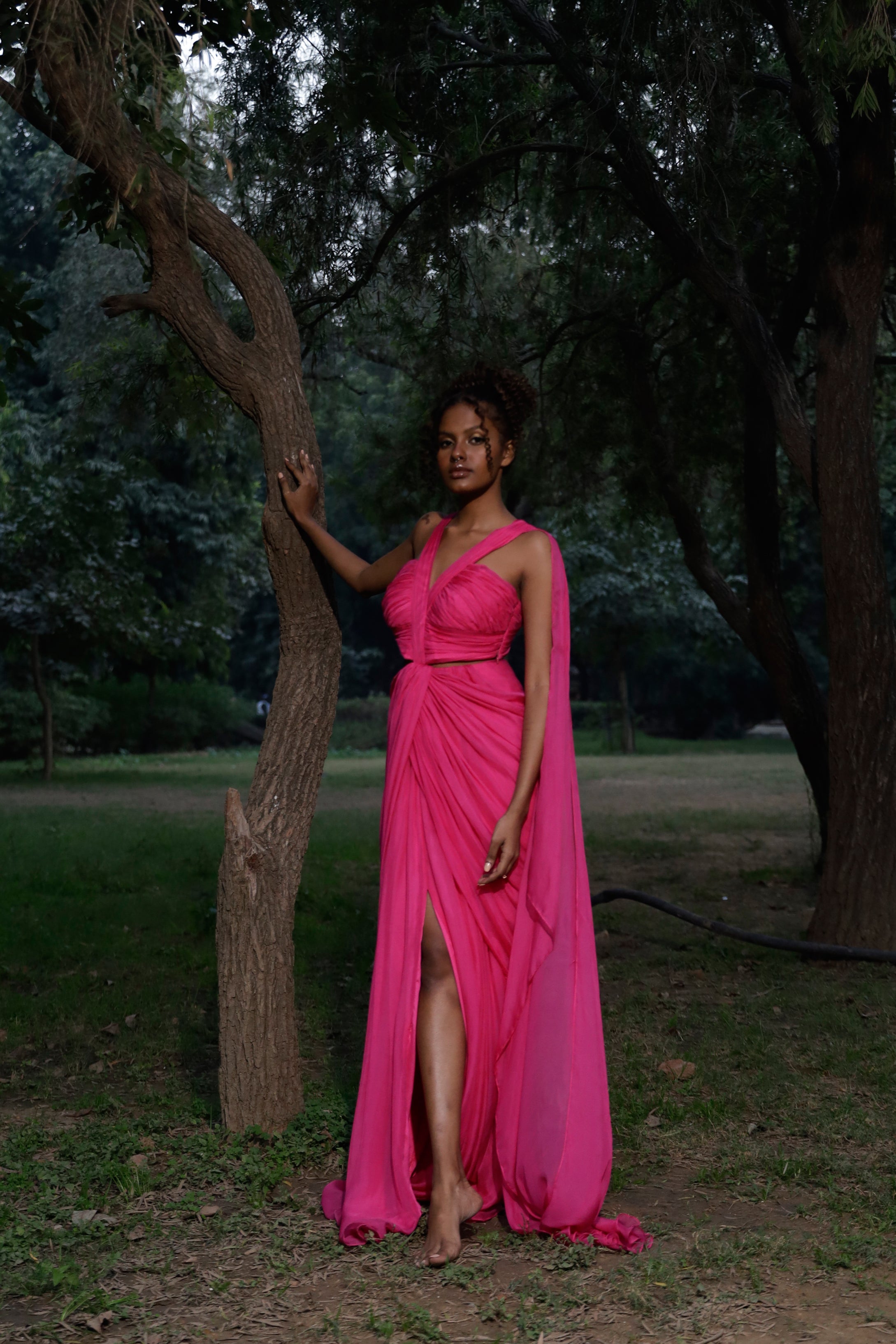 - Hot Pink Chiffon Gown