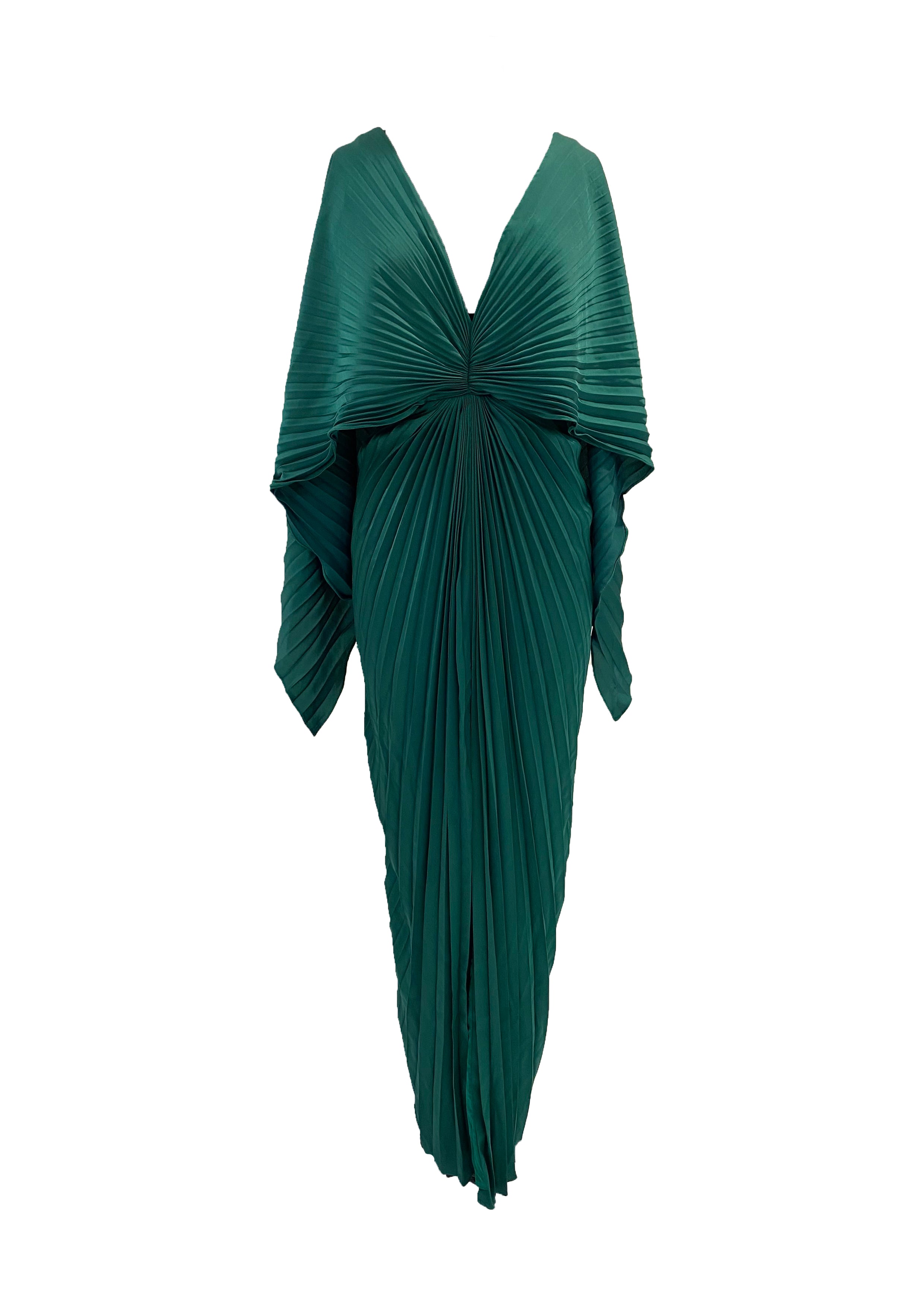 Bottle Green heat pleated cape gown