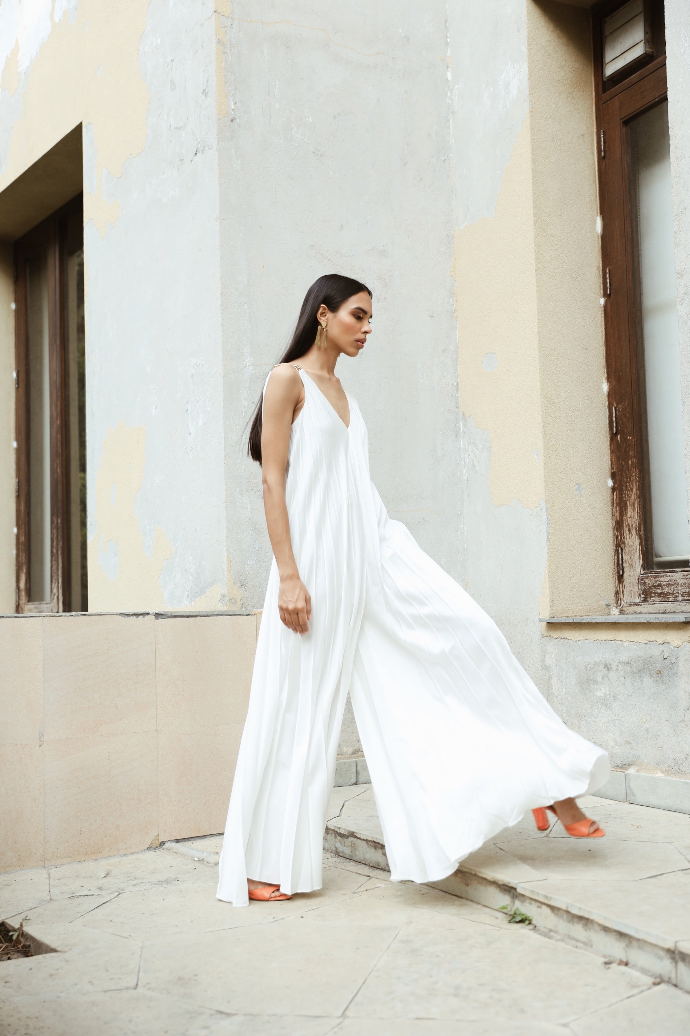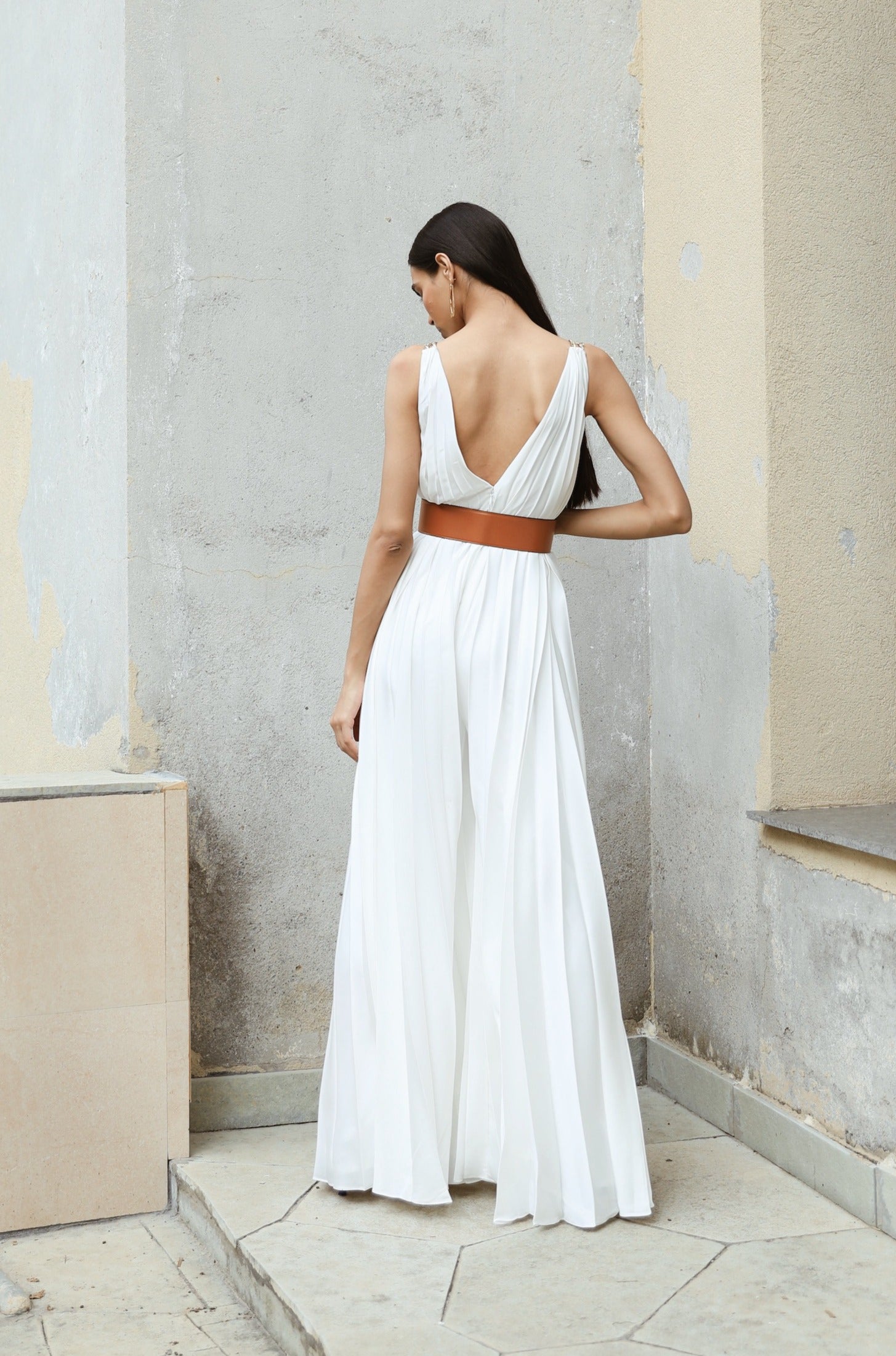 A breath of fresh air for those summer afternoons and those scenic sundowners. Style it with a belt to sharpen the look or let it flow without one to keep it breezy. Its pleats make this one a very elegant and classic style, that could be re-worn many years down the line. Its a style to treasure, don't you think?